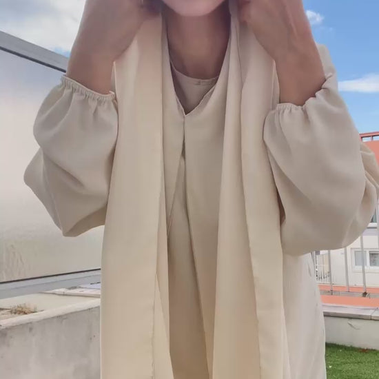 Alliez élégance et confort avec notre ensemble abaya en tissu jazz, doté d’un khimar intégré. Conçu en France, il offre une coupe fluide et un tombé parfait, idéal pour un style chic et pudique au quotidien ou lors d’occasions spéciales. Il s'enfile en 2 minutes chrono !